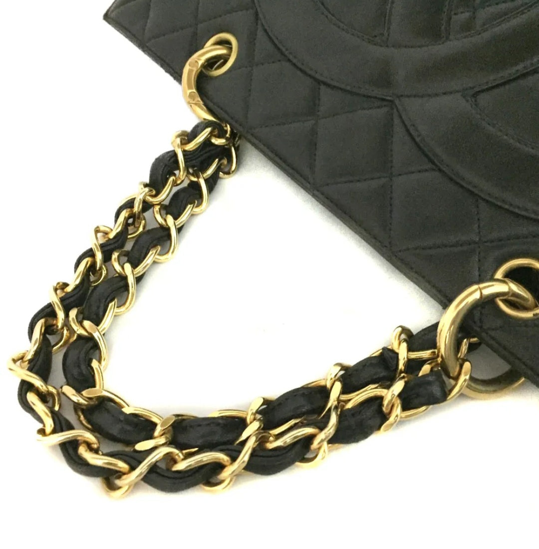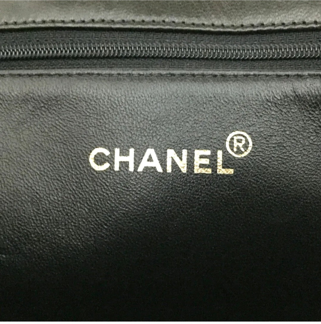 Preowned CHANEL CC Logo Lambskin Chain Tote Hand Bag Black